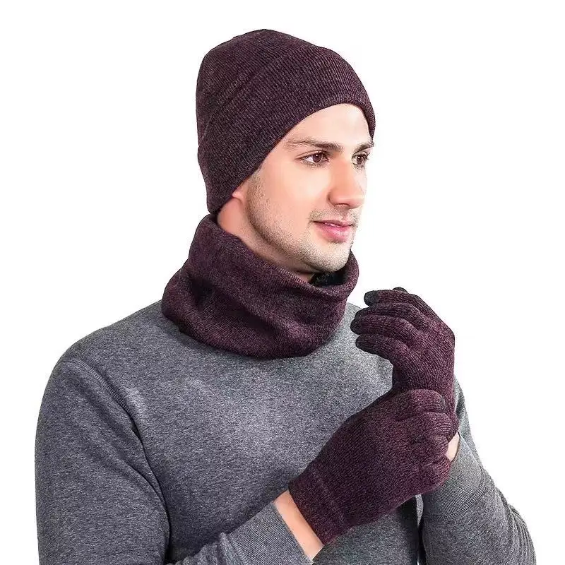 Комплект из шарфа и перчаток, зимняя вязаная плотная теплая шапка, ...
