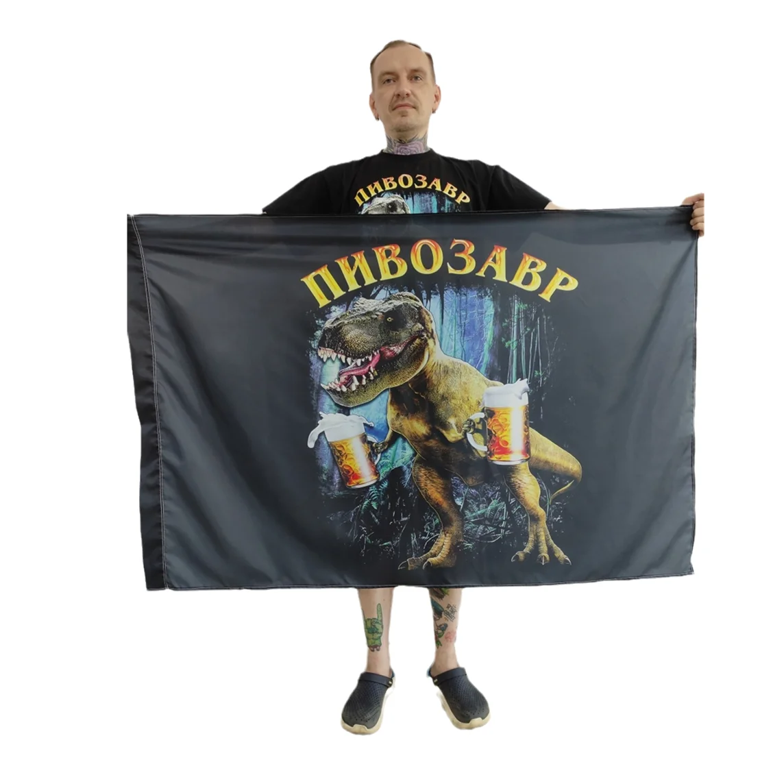 Футболка мужская из мягкого хлопка, с принтом пивозавр