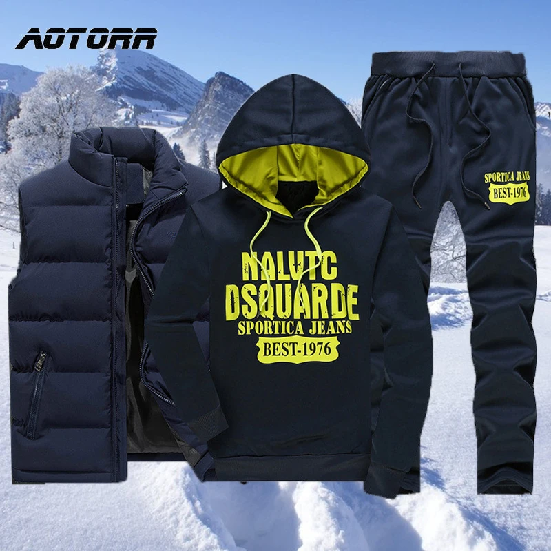 Спортивный костюм мужской из трех предметов, кофта с капюшоном и штаны, спортивный костюм для бега, теплая спортивная одежда, зима 2022