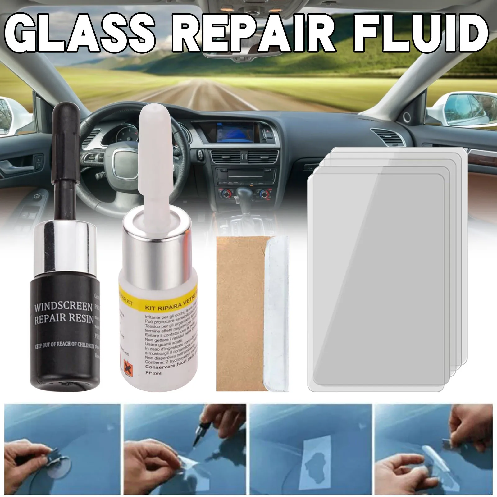 Широкое применение: смола для Ремонта Лобового Стекла может использоваться только для хорошей трещины глаз, трещины полумесяца, паутины, повреждений звезд и некоторых комбинированных трещин диаметром менее 10 мм.