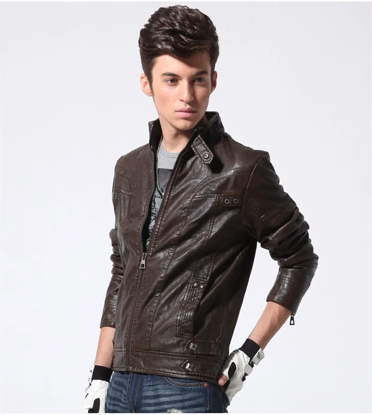 Куртка мужская из искусственной кожи, Осень-зима, для среднего и по...
