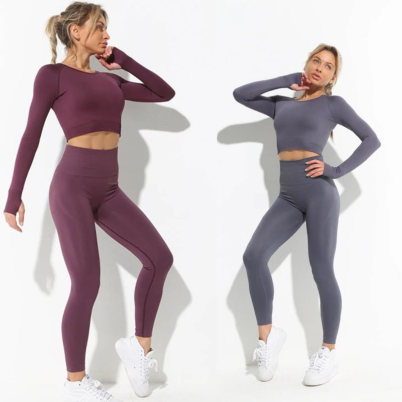 Бесшовный Женский комплект для йоги, тренировочная спортивная одежда, одежда для спортзала, леггинсы с высокой талией, фитнес-бюстгальтер, спортивные костюмы с длинным рукавом, 234 шт.