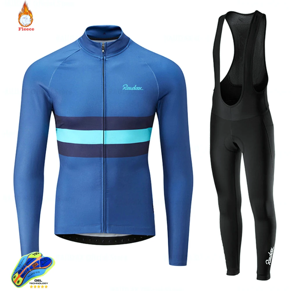 Мужской комплект из Джерси с длинным рукавом, флисовая куртка с нагрудником и брюки, теплая спортивная одежда для велоспорта, команды, велоспорта
