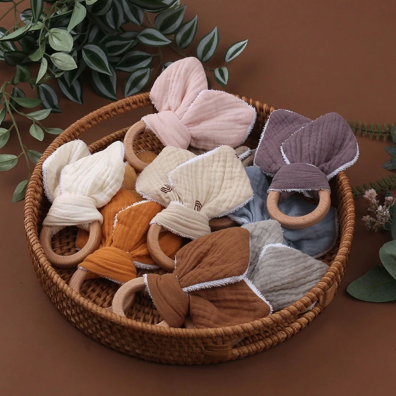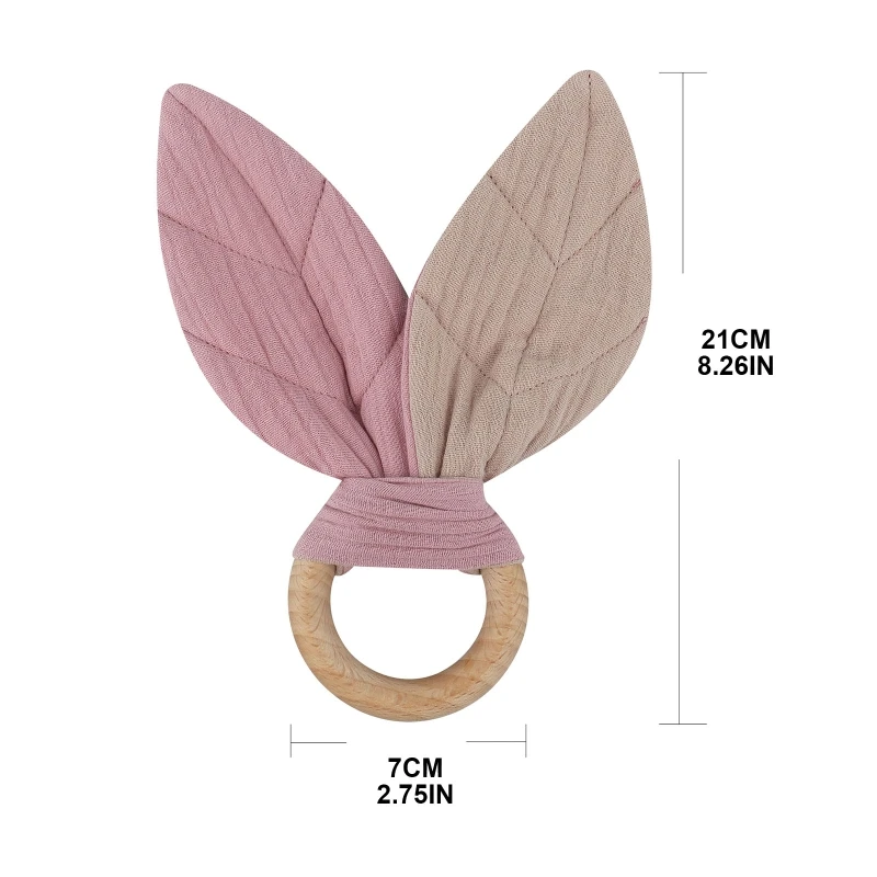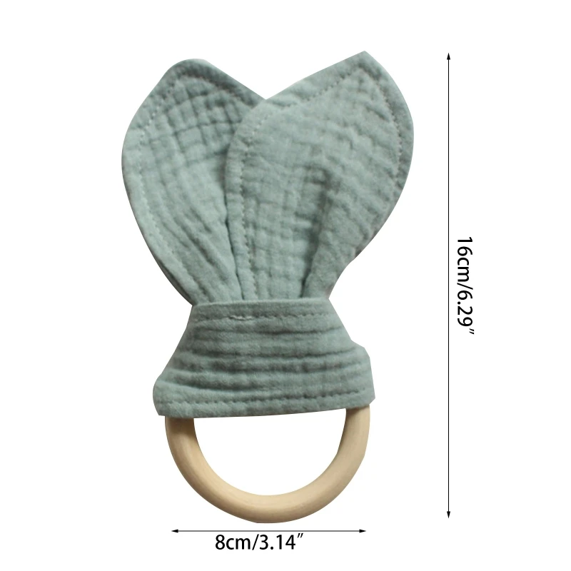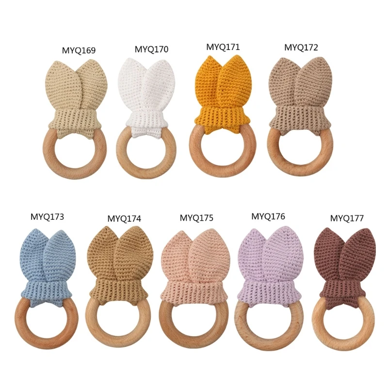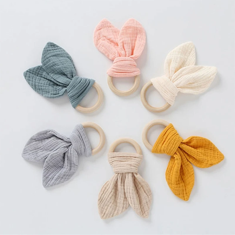 Детское деревянное кольцо-прорезыватель, мягкая хлопковая Игрушка-прорезыватель с кроличьими ушками для прорезывания зубов, сенсорная погремушка, подарок для новорожденных