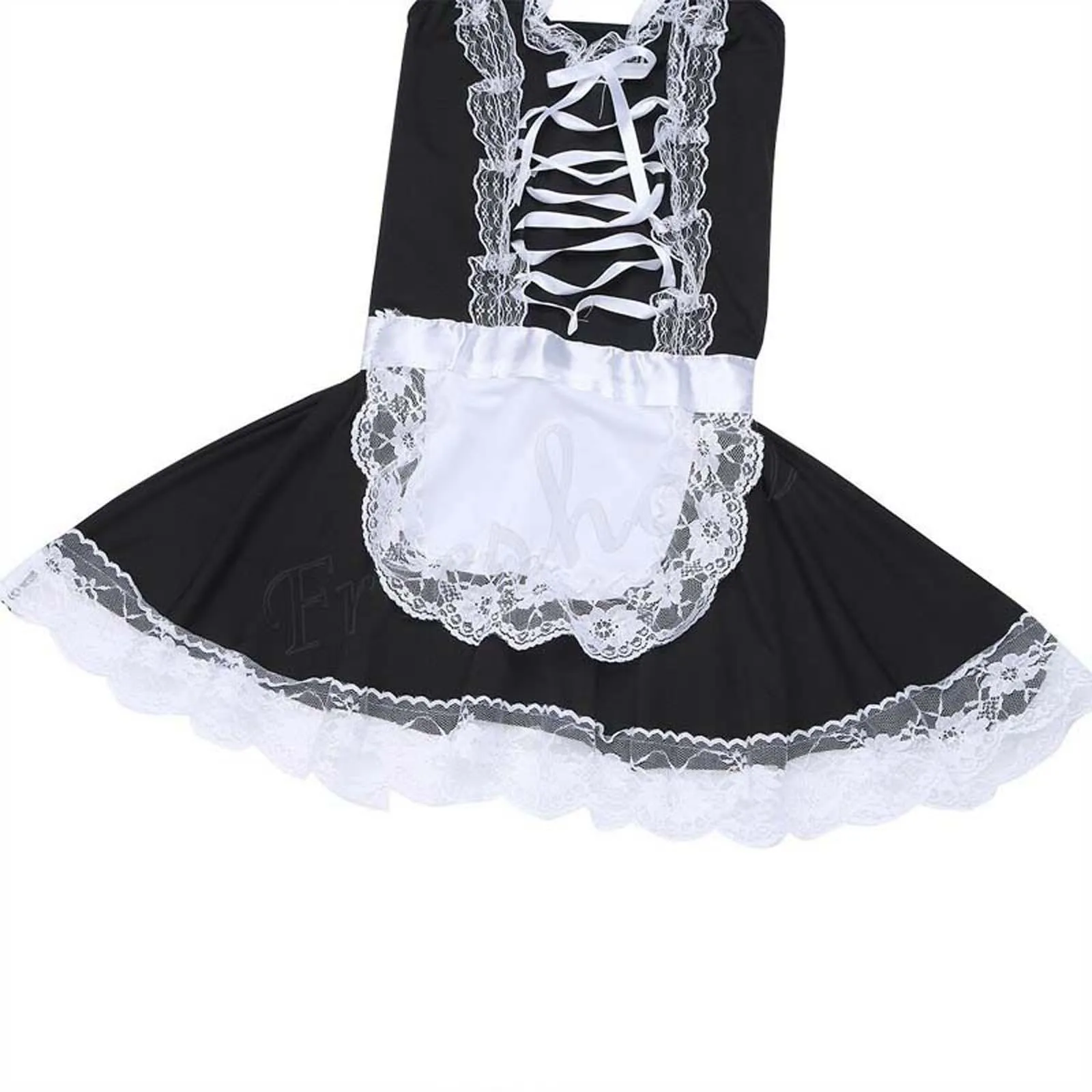Комплект нижнего белья, кружевная эротическая ночная рубашка из двух частей, нижнее белье, эротическая одежда горничной, косплей, сексуальная одежда, Экзотические