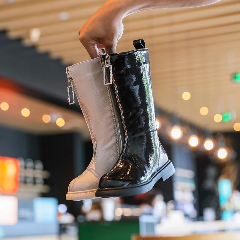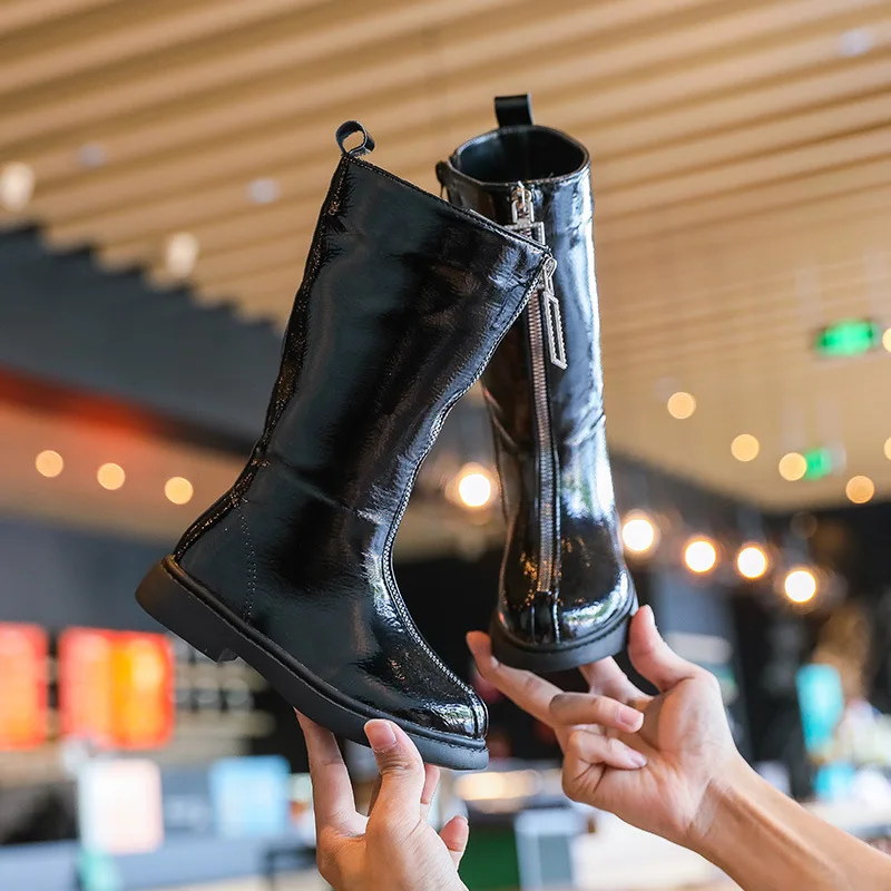 Детские ботинки, новинка 2021, высокие ботинки для девочек на двойной молнии, Нескользящие длинные ботинки принцессы для девочек, теплая Модная Осенняя популярная обувь