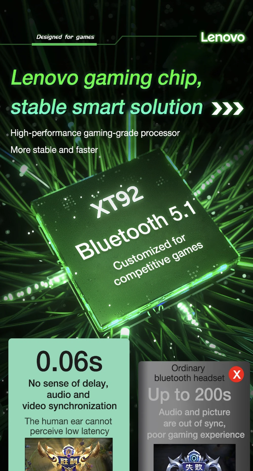 Игровые беспроводные наушники Lenovo XT92 с Bluetooth 5,1, с низкой...