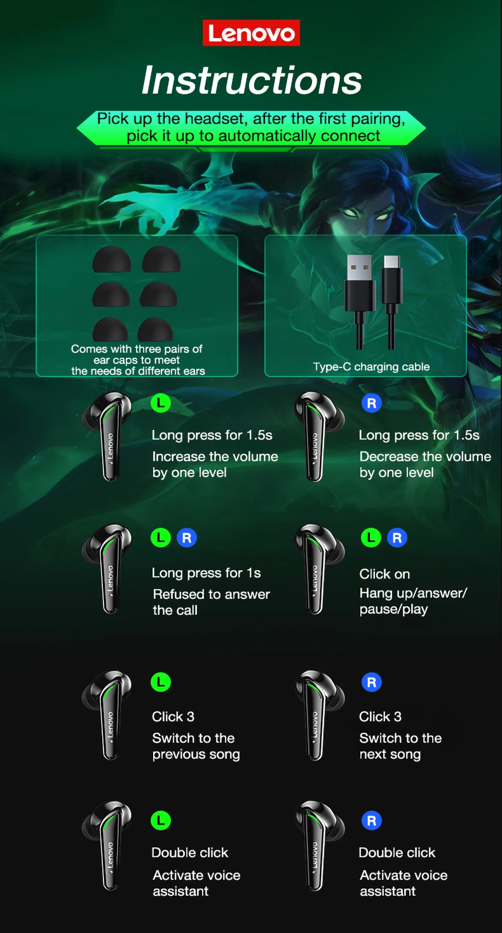 Беспроводные наушники Lenovo XT92 XT82 XT96 Bluetooth 5.1 игровая г...