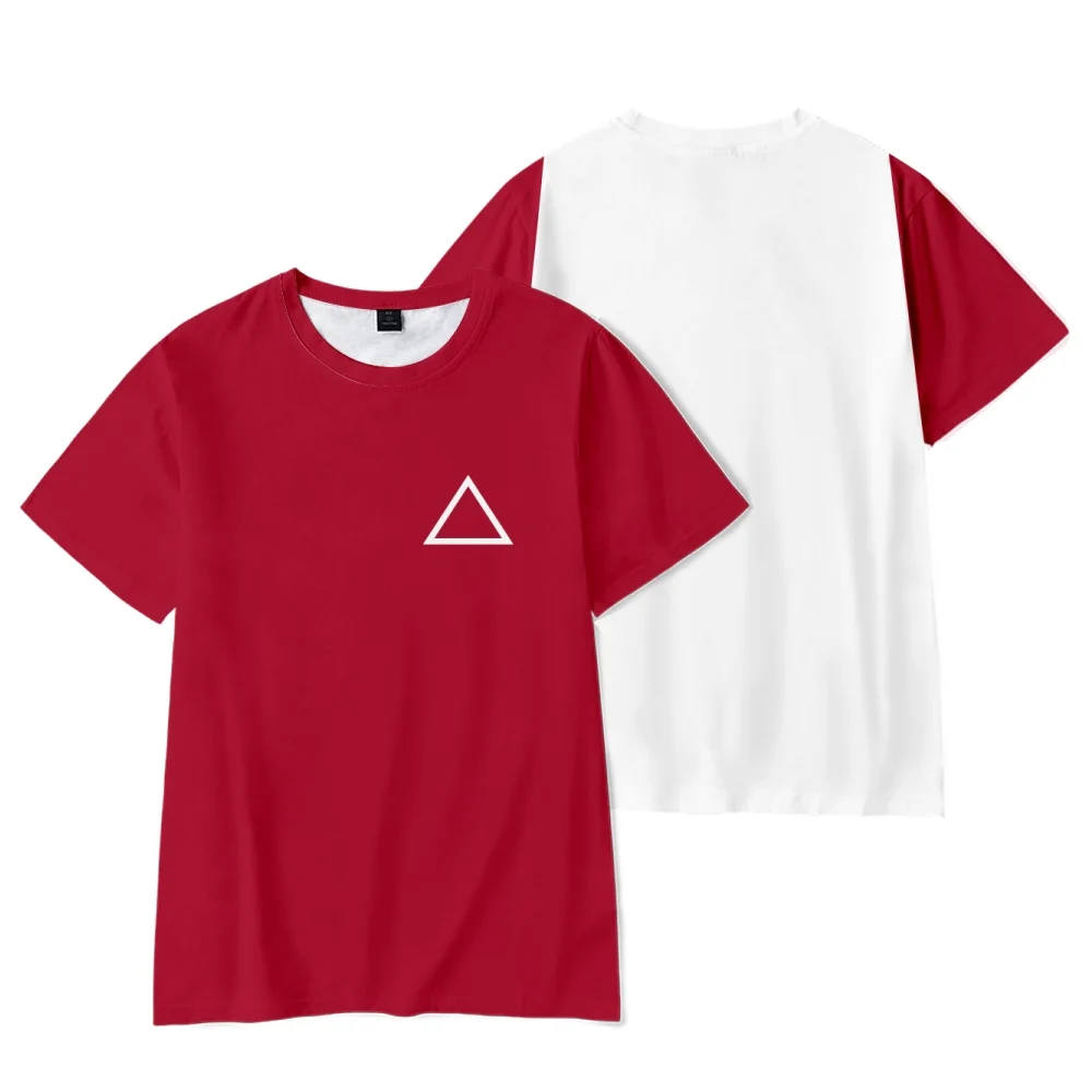 Футболка с 3D-принтом игры кальмар, мужская и женская футболка унисекс, повседневная детская футболка в стиле хип-хоп, летняя Красная футболка, 2021