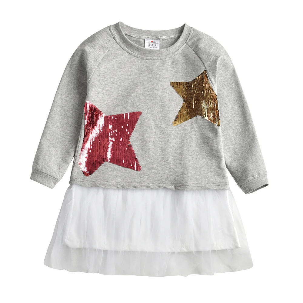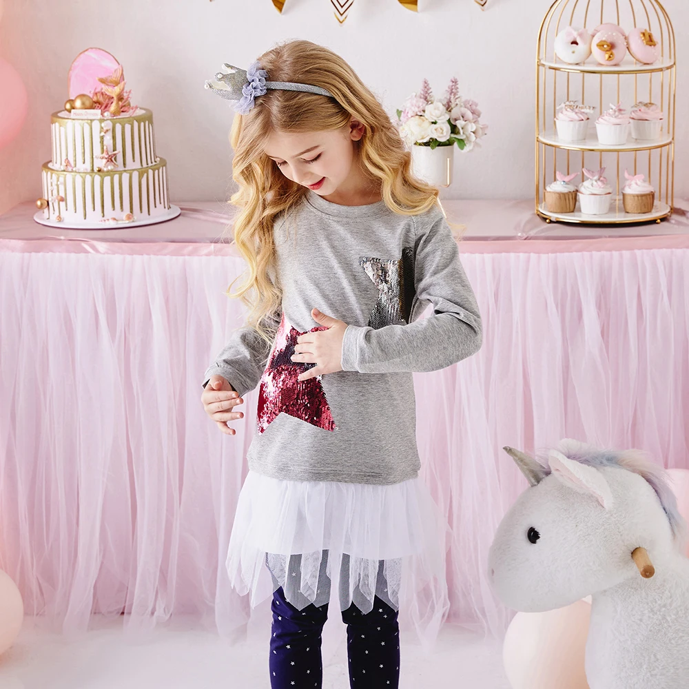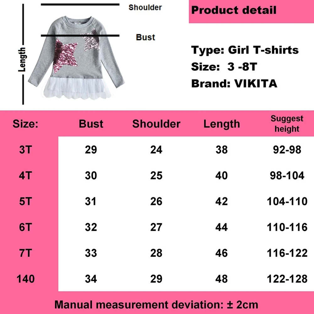 VIKITAДетская толстовка с рисунком звезды и блестками; Детские топы для девочек; Сезон весна-осень; Хлопковые толстовки; Детская одежда для От 3 до 12 лет