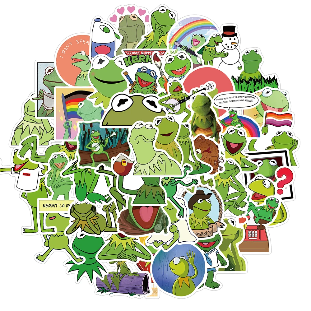 50 шт. зеленая Кермит катушка лягушка Мультяшные наклейки для автом...