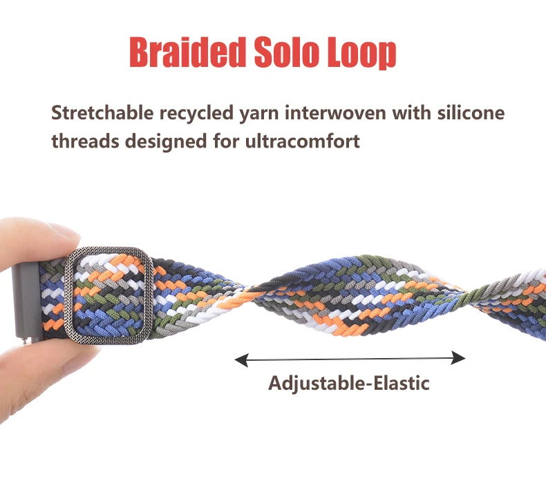 20 мм/22 мм Плетеный Solo Loop Band для Samsung Galaxy watch 3/46 мм/42 мм/active 2/Gear S3 браслет Huawei watch GT/2/2e/Pro ремешок