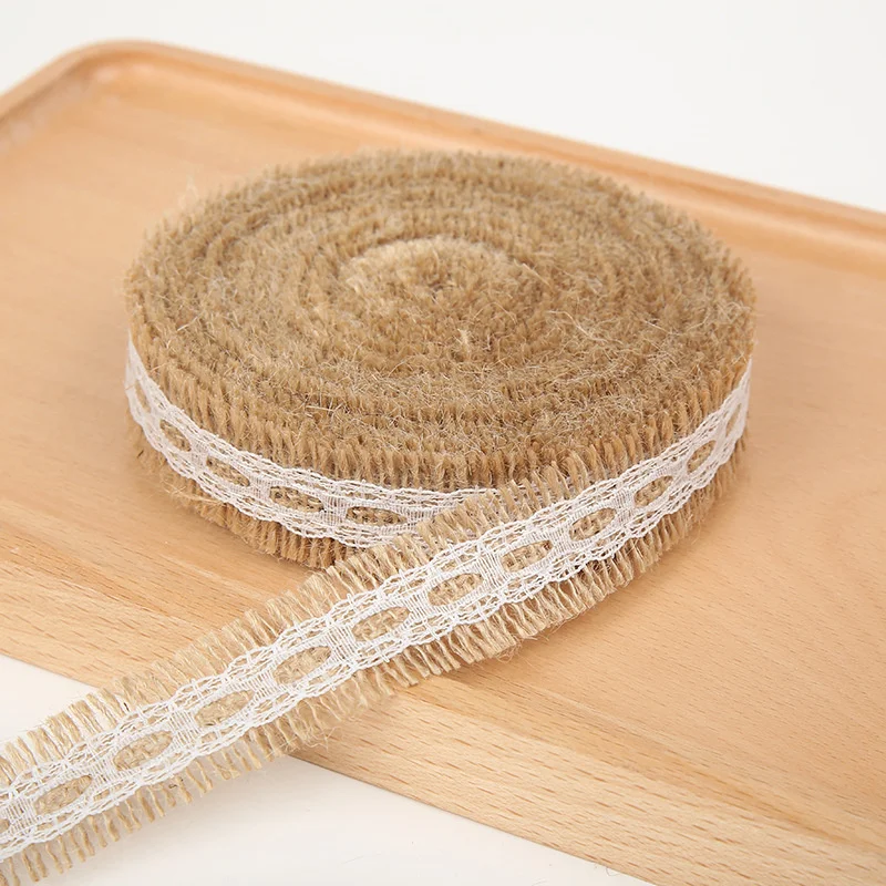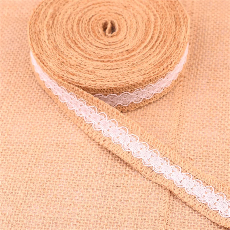 2 метра в рулоне, Винтажный кружевной джутовый рулон для свадебного украшения, сделай сам, товары для рождественской вечеринки, аксессуары, натуральная лента