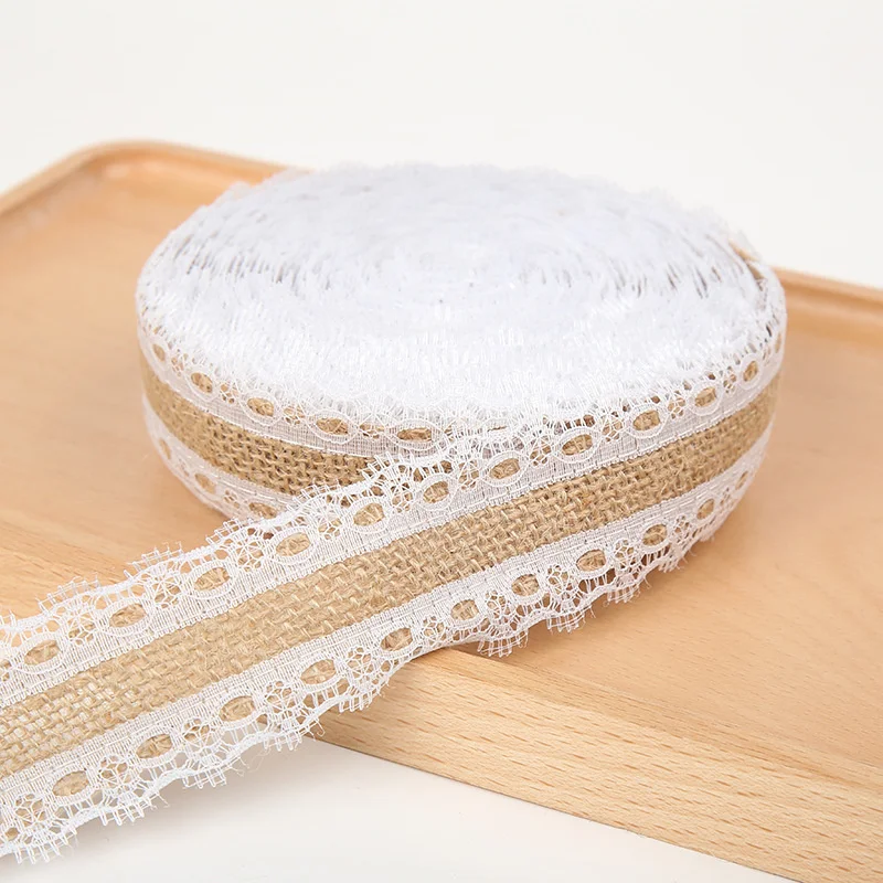 1 метр 25 мм Натуральная джутовая кружевная лента с белой кружевной...