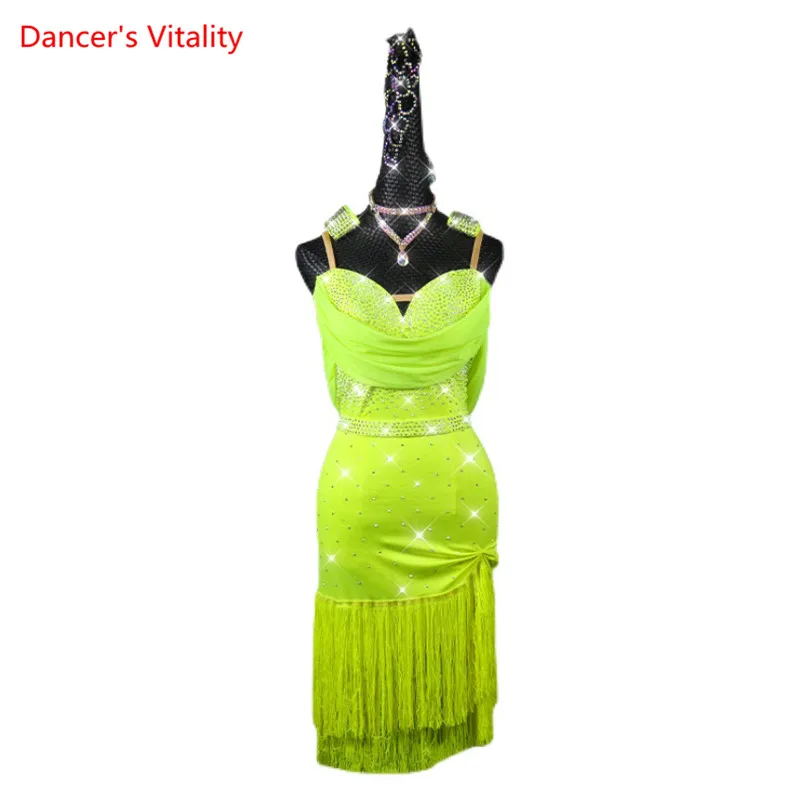 Платье для латинских танцев, юбка с бриллиантами и кисточками, одежда для соревнований, Высококачественная профессиональная одежда для взрослых, детская одежда для выступлений