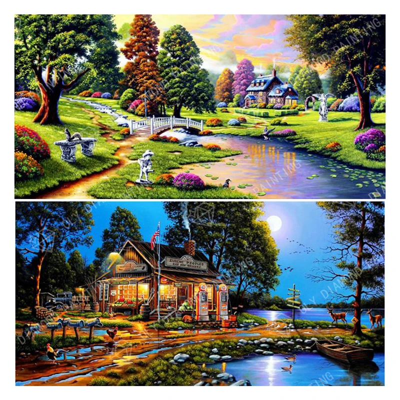 Алмазная живопись 5D, Алмазная мозаика пейзаж, коттедж, распродажа,...