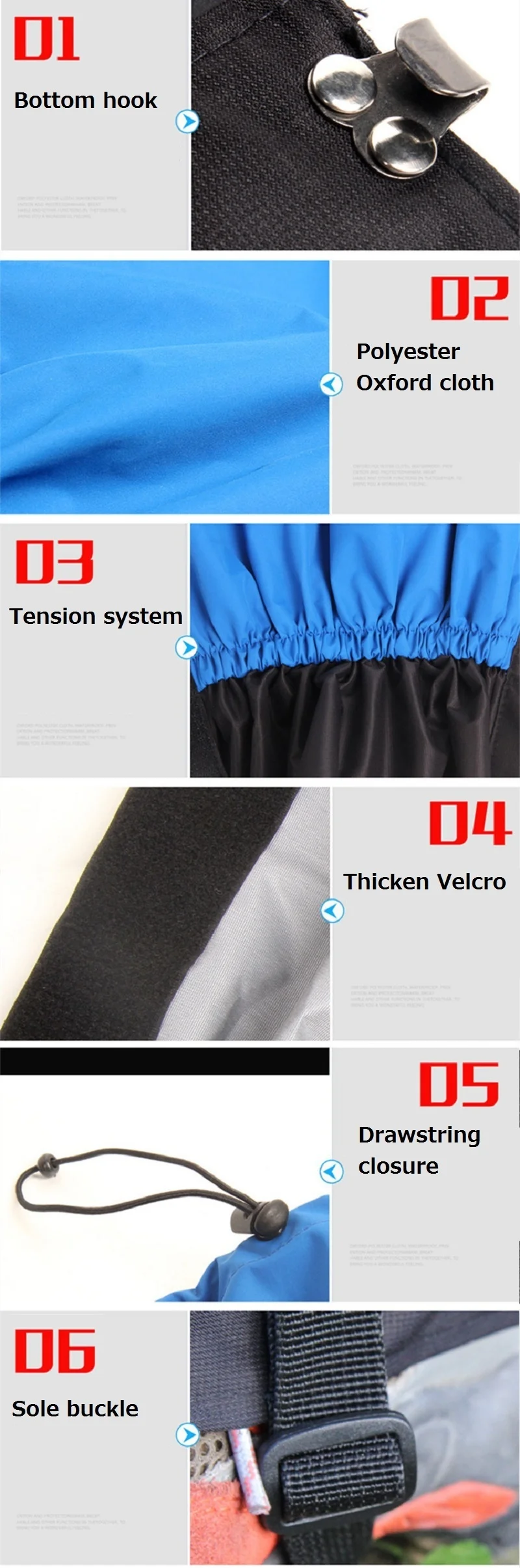 • Предназначен для обработки погружения в глубокий снег и Буш, пробивающихся по влажным лесам, Водонепроницаемые Гетры хорошо справляются с тем, чтобы сохранить снег, дождь и мусор из ваших ботинок.