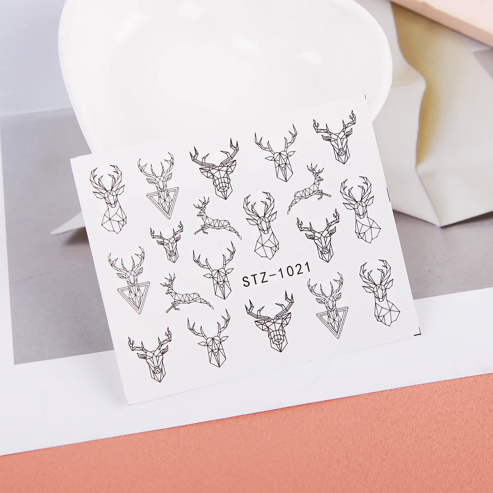 Абстрактные линии, наклейки для дизайна ногтей, сделай сам, животное, лицо, олень, лиса, картина, Переводные переводки, водяные знаки, украшения для ногтей, 1 шт.