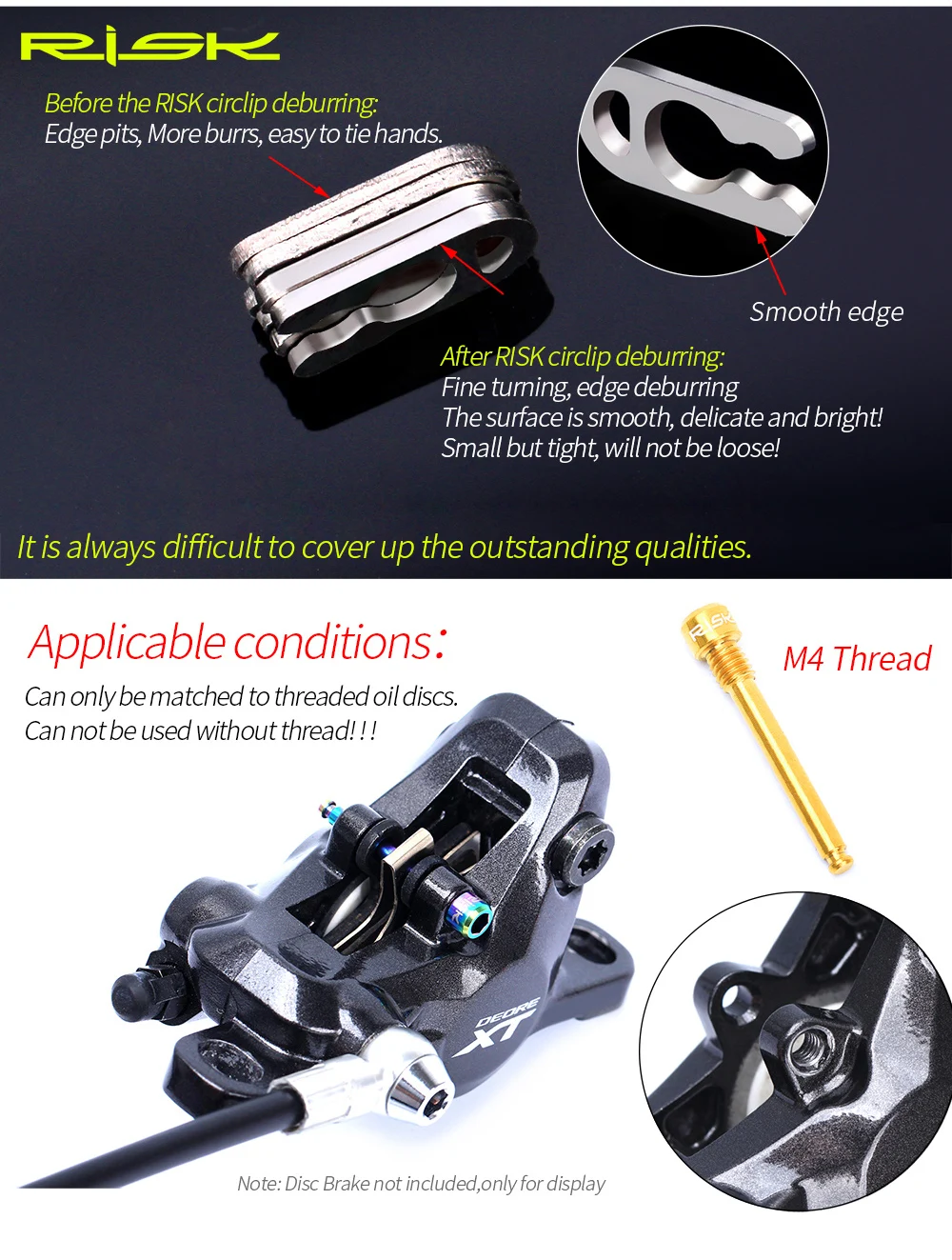 Стопорные болты для дискового тормоза велосипеда, M4, крепёжные штифты из титанового сплава, скобы, шестигранные винты, фиксаторы, штифты