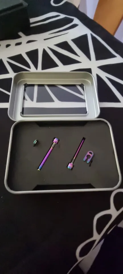 Фиксатор и зажим из титанового сплава легче, чем оригинальные стальные, более высокая прочность, плотнее, и он не отвалится, даже если он энергично встряхнут!В то же время, он не будет ржаветь, а форма очень индивидуальная.Несколько цветов, поражающих столкновения, настраивая вашу собственную индивидуальность.