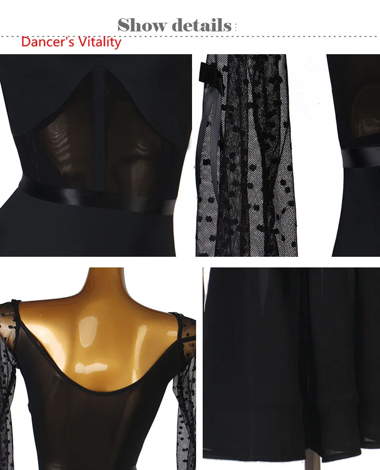 Женское платье для бальных танцев, Сетчатое платье с длинным рукаво...