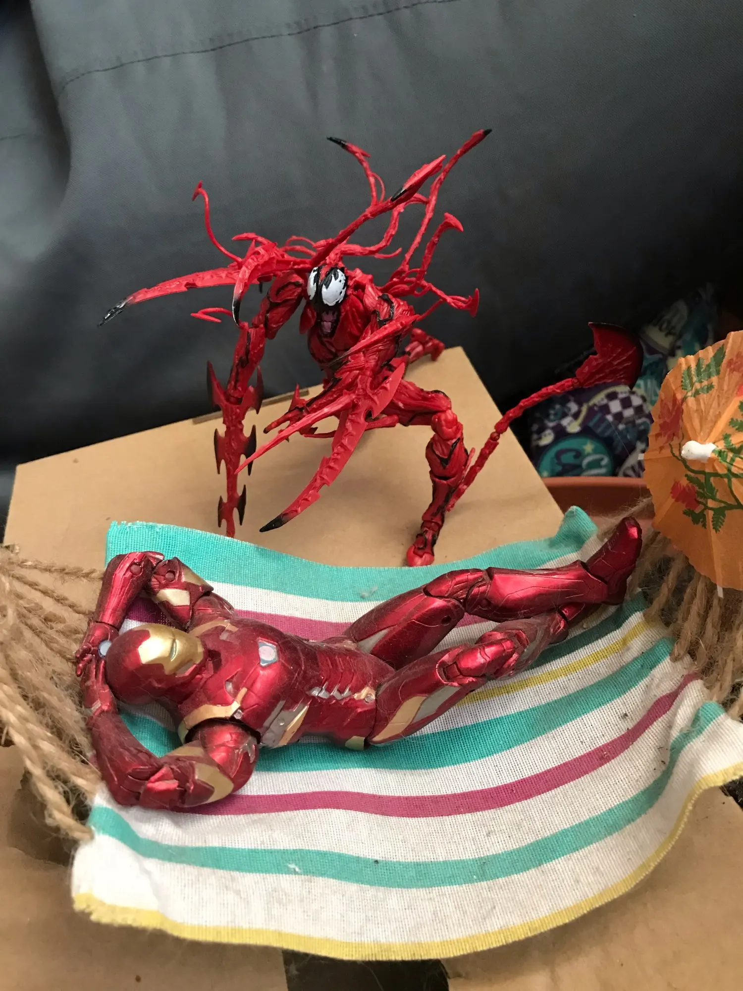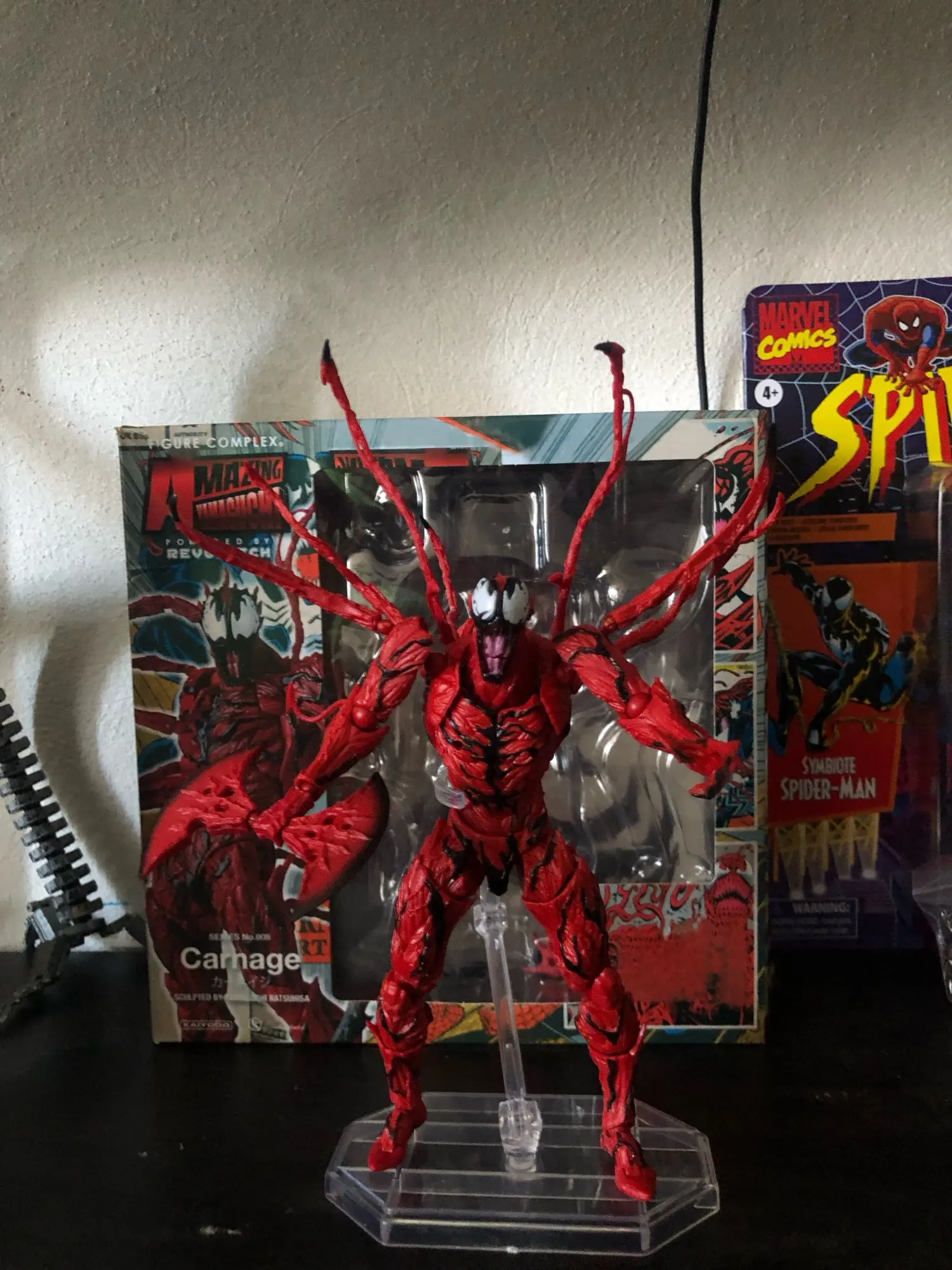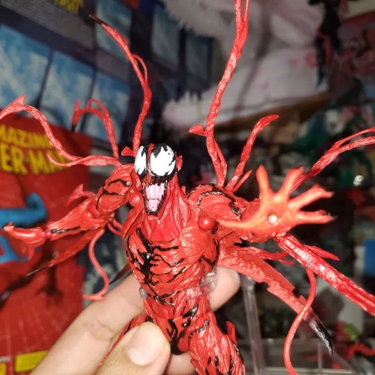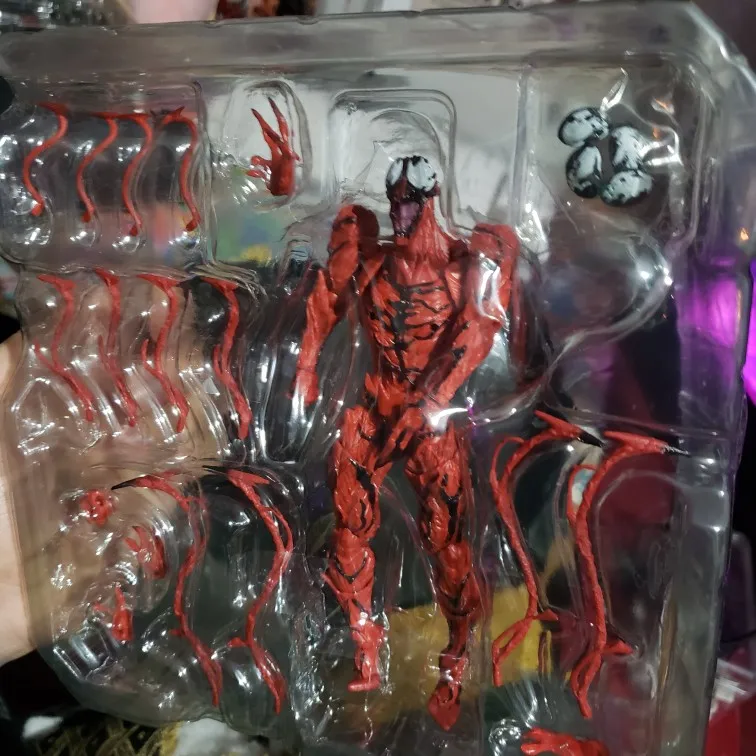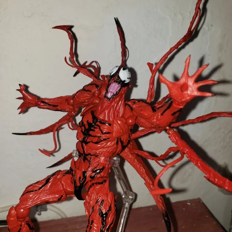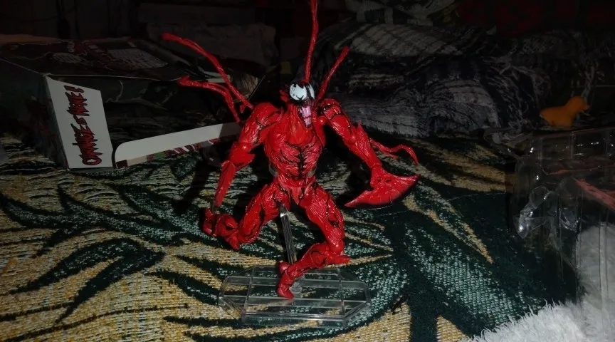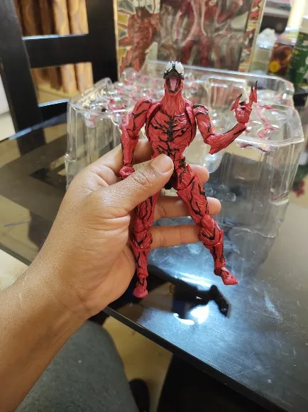 Идеальная фигурка за эти деньги) важно понимать, что это фигурка не для детей, а для взрослых коллекционеров. Дети очень быстро сломают суставы. А взрослый будет ставить фигурку в любую позу и закреплять фиксатором. Фиксатор кстати в пути сломался, но это не повлияет на максимальную оценку. Очень много дополнительных деталей. Одна из любимых фигурок теперь) у моей вселенной Карнаж будет положительным героем, потому что нет Веномов таких-же качественных как этот Карнаж)