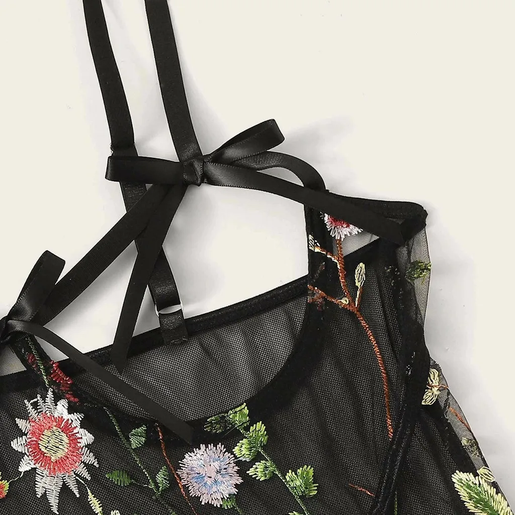 Женские эротические костюмы, сексуальное нижнее белье, откровенный открытый бюстгальтер, женское нижнее белье, кружевное прозрачное ночное белье с цветочной вышивкой