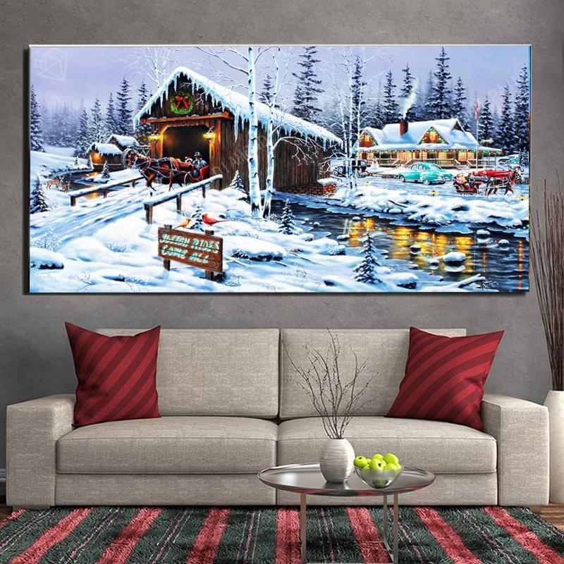 Алмазная 5D картина сделай сам, картина с изображением снежной сцен...