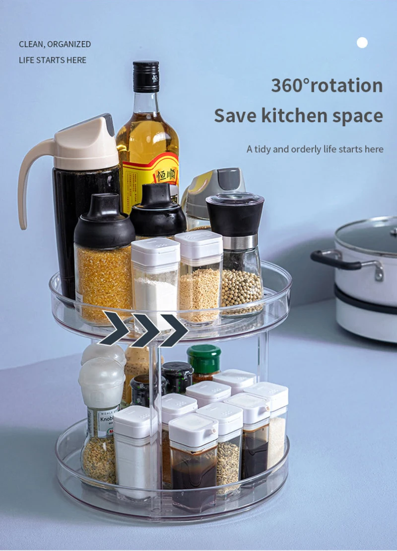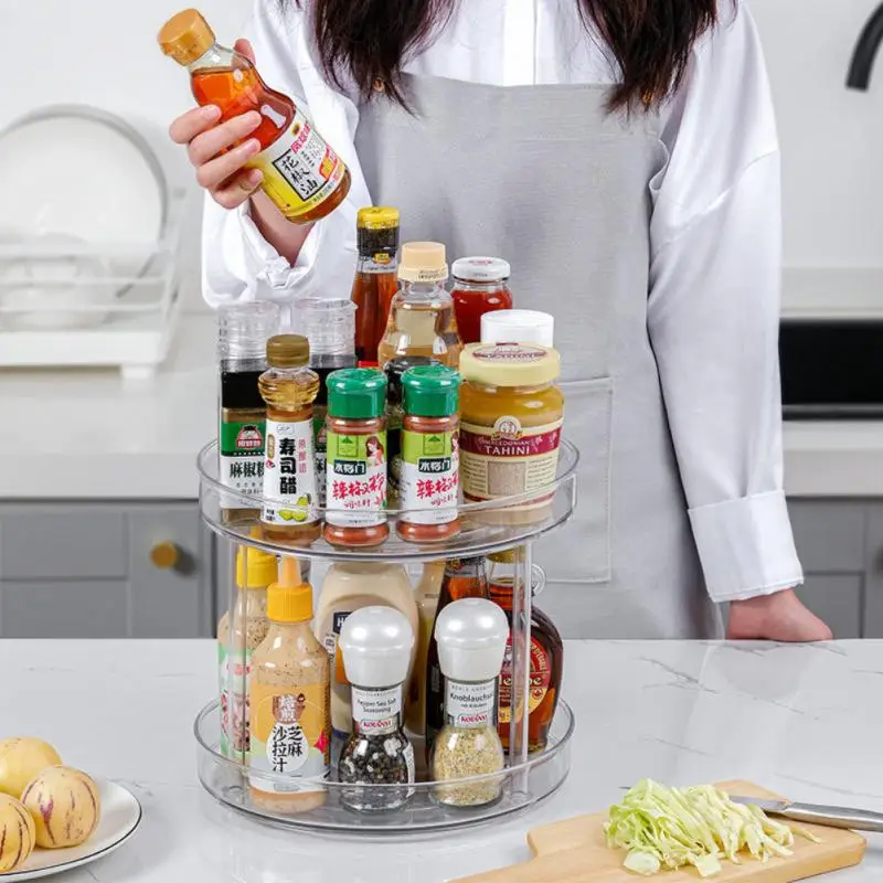 Вращающийся на 360 градусов шкаф-органайзер для хранения специй, напитков, искусственный прозрачный поворотный стол для кухонных лотков