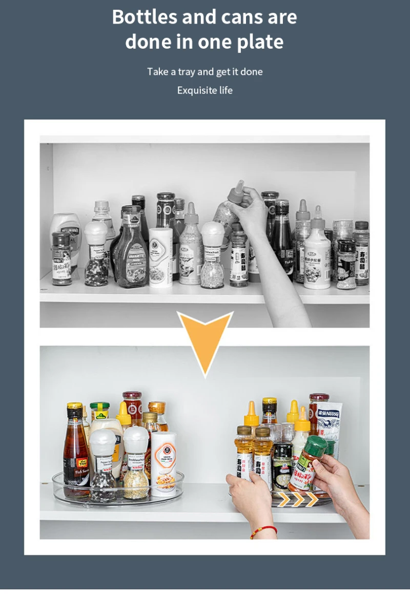 1. Идеальное место для хранения: корзина для хранения turntable-практичный органайзер для хранения, очень подходит для хранения чайных пакетиков, сахара, кофе, соли, кухонных приправ, фруктов, продуктов по уходу за кожей и офисного хранения, И т. д.