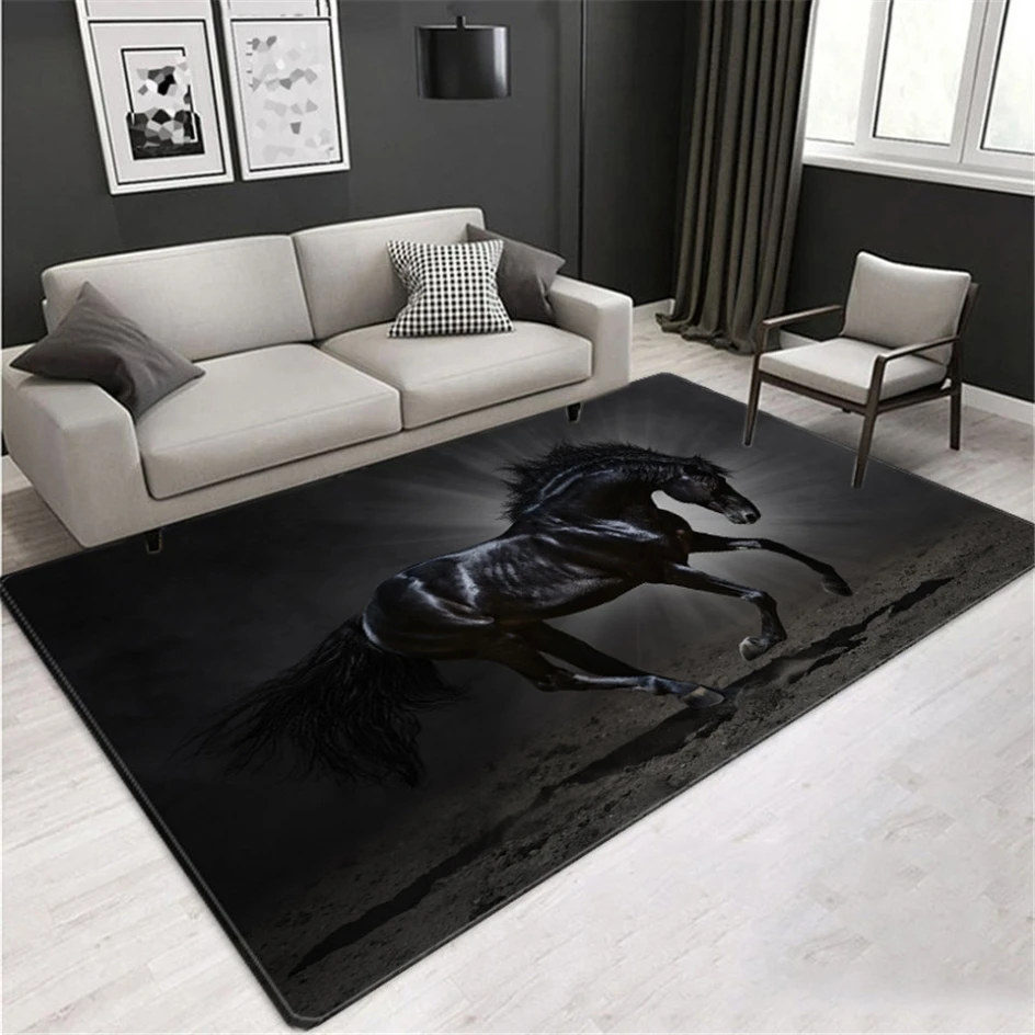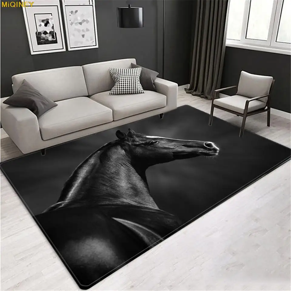 3D ковер на пол с черной лошадью, большой ковер с животным рисунком, ковер для гостиной, ванной, домашний декор, мягкий Поролоновый коврик для входной двери