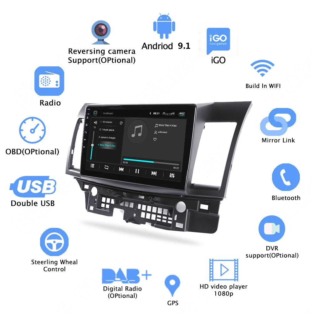 10,1 дюймов для Mitsubishi Lancer 2007-2018 Android 10,1 автомобильный Радио плеер зеркальная связь WiFi GPS FM 2 DIN1. Операционная система Android, вы можете установить приложения, приложения, Google Play Store, Skype, Facebook, YouTube, Twitter и многое другое.2,9-дюймовый HD емкостный сенсорный экран: 1024*600 разрешение, не 800*4803. Процессор: четырехъядерный процессор CortexRAM + ROM: 2G + 16G / 2G + 32G4. Шнур питания легко подключить, просто подключите его непосредственно к адаптеру кабеля Mazda 2.5. Формат Мультимедиа: MP3, MP4, WMA, JPEG и т. Д.Поддержка воспроизведения видео 1080P6. Поддержка Bluetooth hands-free, поддержка телефонной книги7. Поддержка оригинальной кнопки рулевого колеса автомобиля8. Встроенная Wi-Fi антенна для подключения к ближайшим точкам доступа Wi-Fi.Используйте телефон в качестве точки доступа к Wi-Fi.9. Поддержка GPS карт, таких как Google Online MapYandex.navi / Waze on Line / Sygic...10. Частотный диапазон FM: 87,5-108 МГц, FM интегрирует 18 предварительно настроенных сайтов11. Поддержка логотипа, изменение логотипа, заводской пароль: 8888, изменение логотипа12. Языки с множеством экранных меню: китайский (упрощенный), русский, испанский, турецкий, русский, иврит, итальянский, китайский (традиционный), арабский, французский, немецкий, английский, португальский, 48 языков. Корея, Таиланд и т. Д.Поддержка USB DVR (опционально)DAB + Поддержка (опционально)Поддержка TMPS (опционально)Поддержка OBD (опционально)