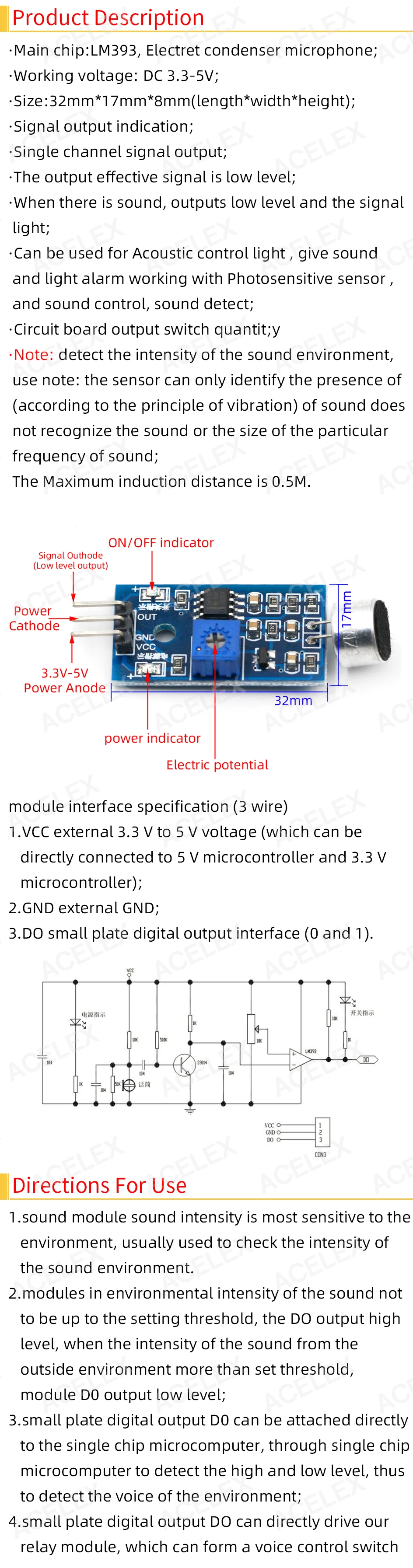 3-контактный голосовой модуль датчика обнаружения звука, Интеллекту...