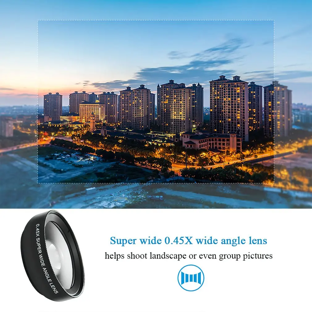 Универсальный объектив для мобильного телефона 0.45X широкоугольный объектив для камеры Len & Macro HD Универсальный объектив для телефона широкоугольный объектив