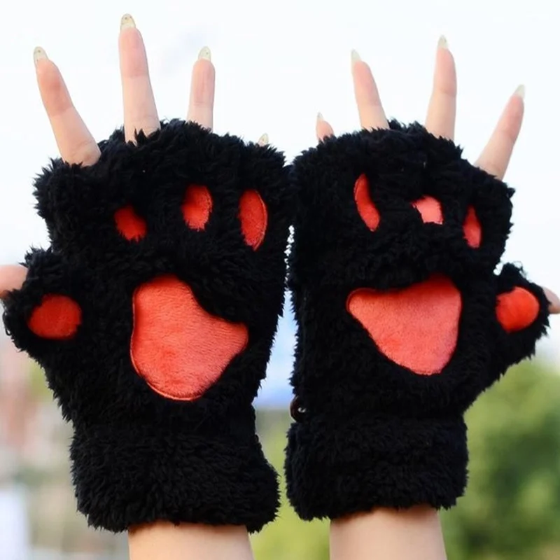 Перчатки женские, плюшевые, без пальцев, теплые, кошачья лапа с ког...