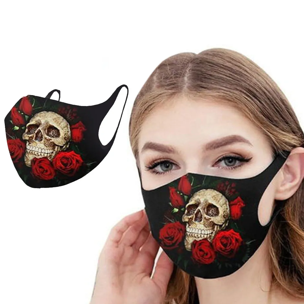 Маска крутая с принтом розы и черепа маски для взрослых унисекс Солнцезащитная маска для лица с песком дышащая велосипедная маска Ветрозащитная маска на Хэллоуин