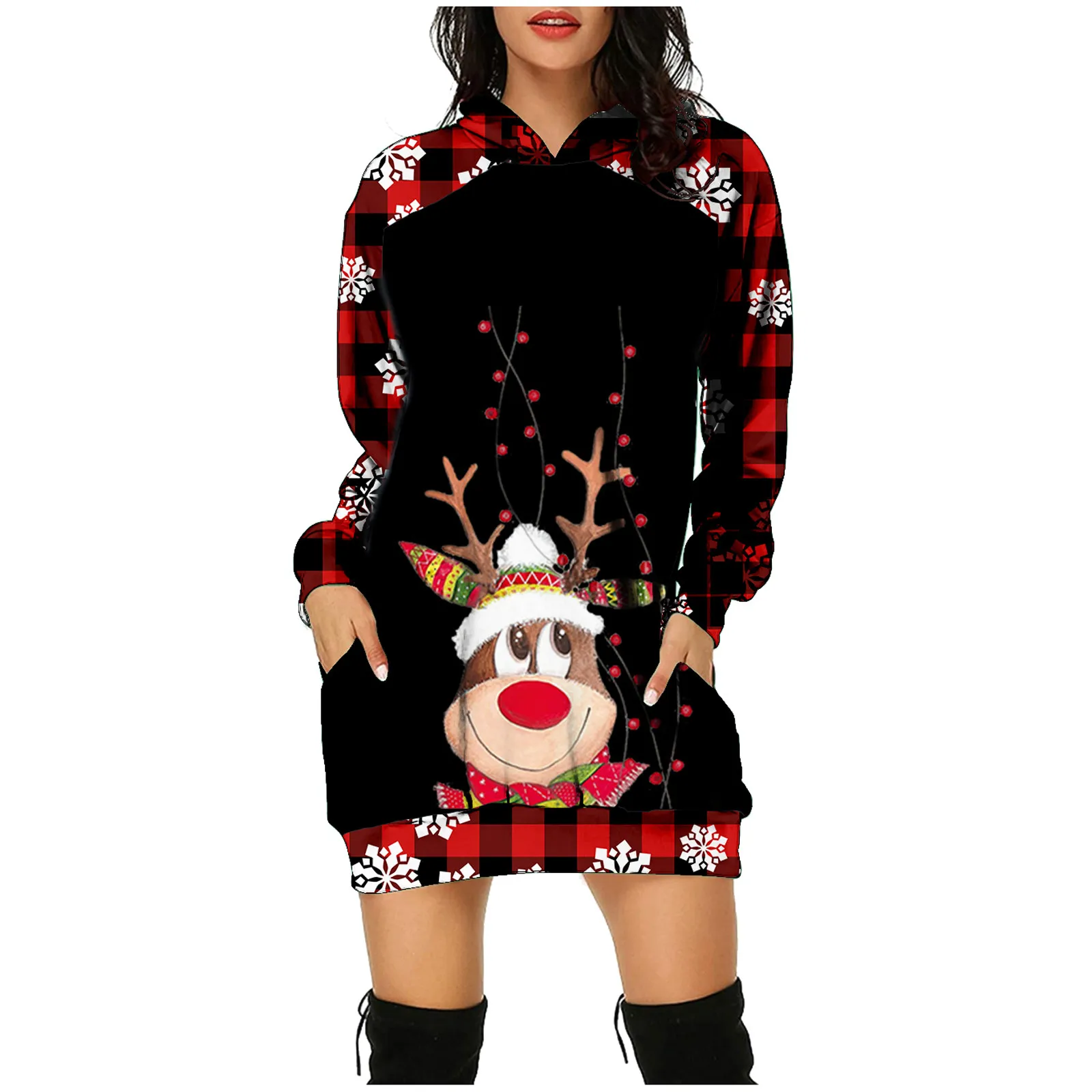 Женское платье, модные рождественские платья для женщин, платье с длинными рукавами и карманами на бедрах, с принтом животных и снега, 2021