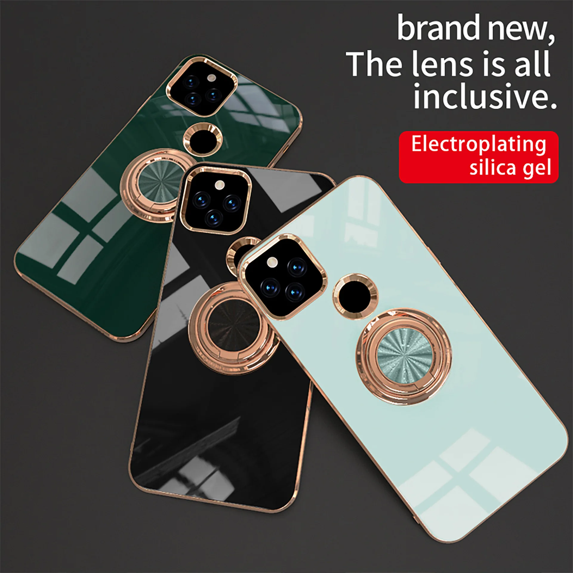 Серый Применимо к Google Pixel 5A мобильный телефон чехол Гальванизированный силиконовый кольцевой застежка автомобильный магнит