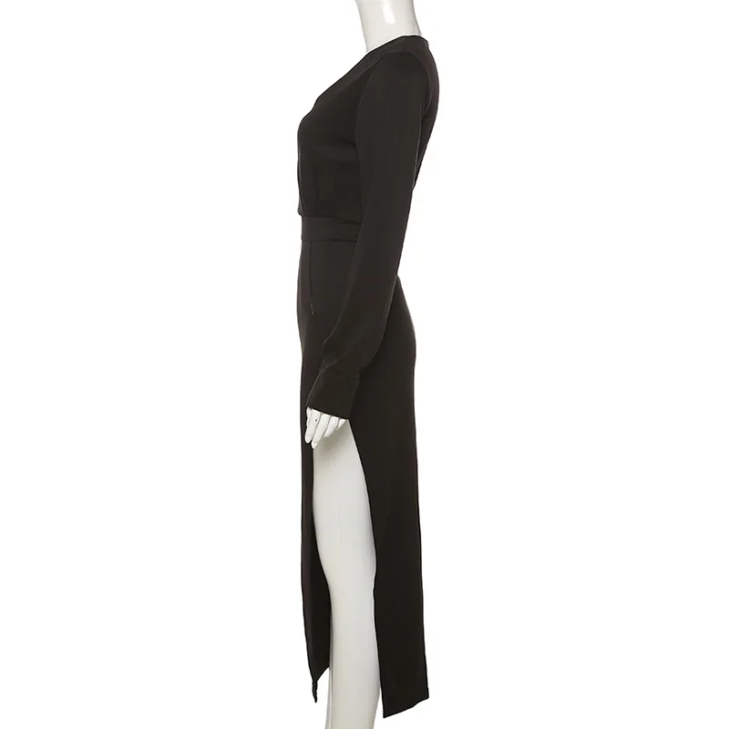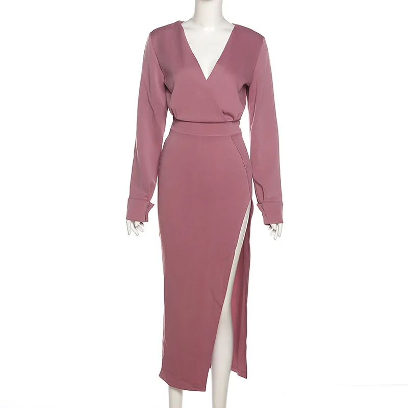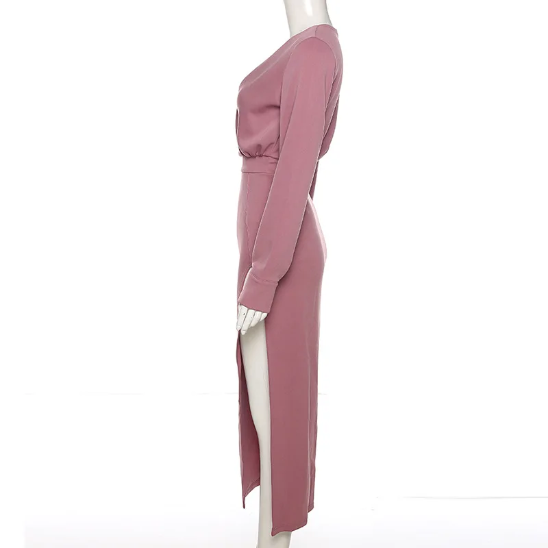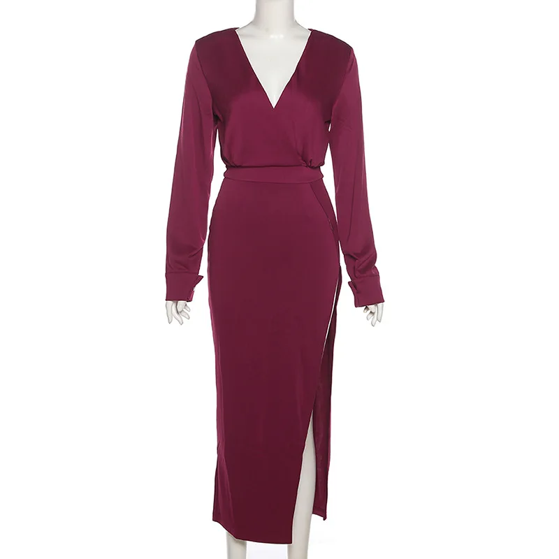 Осенне-зимнее платье 2021, макси-платье, длинное платье, платье с длинным рукавом, v-образный вырез, разрез, облегающее платье, сексуальное платье, повседневные женские платья, вечерние платья, платье для выпускного вечера, вечерние платья, элегантные платья для женщин