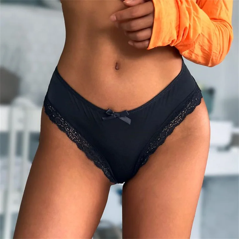 Женские кружевные трусики-стринги с бантом, бесшовные, из хлопка