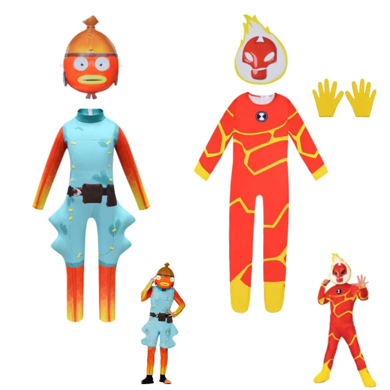Детский Костюм Бен 10 человек-пламя для косплея на Хэллоуин костюм для мальчиков аниме косплей для девочек ужас костюм с маской забавная одежда Вечерние