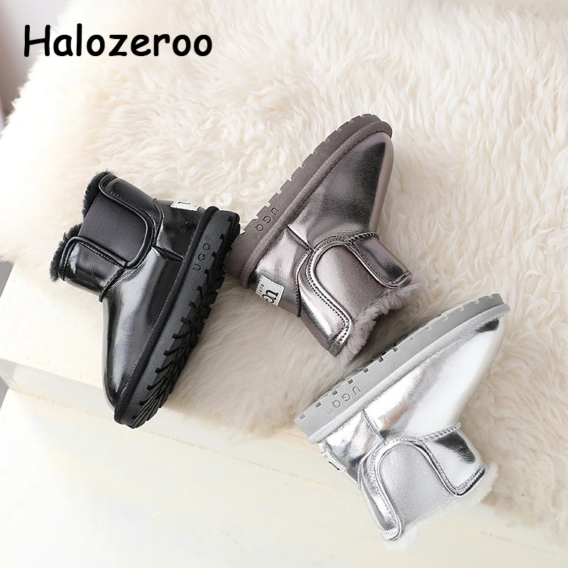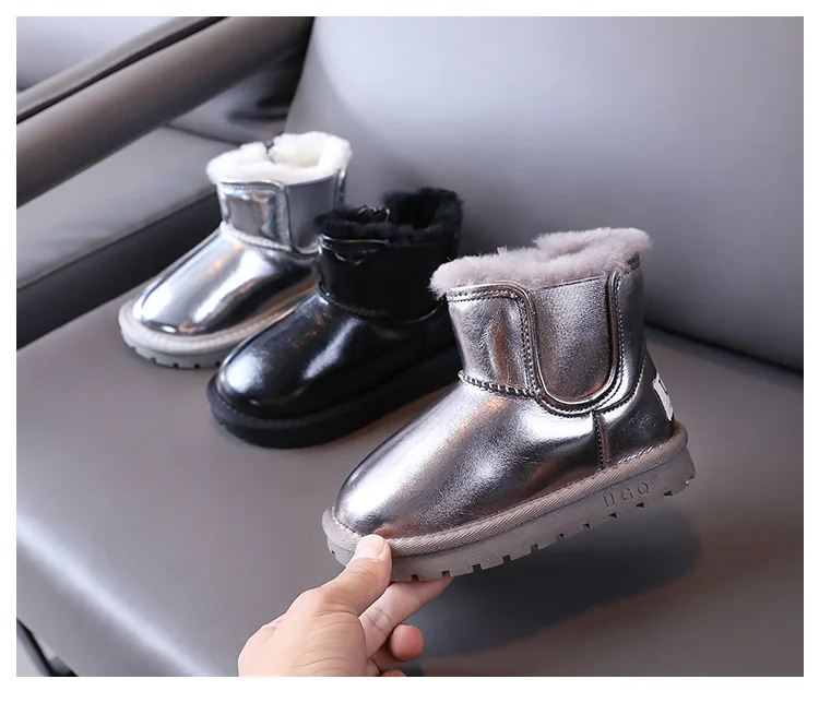 Детские зимние ботинки на меху, новые зимние ботильоны без шнуровки для маленьких девочек, детская черная Брендовая обувь, обувь для малышей, мягкие модные ботинки для мальчиков