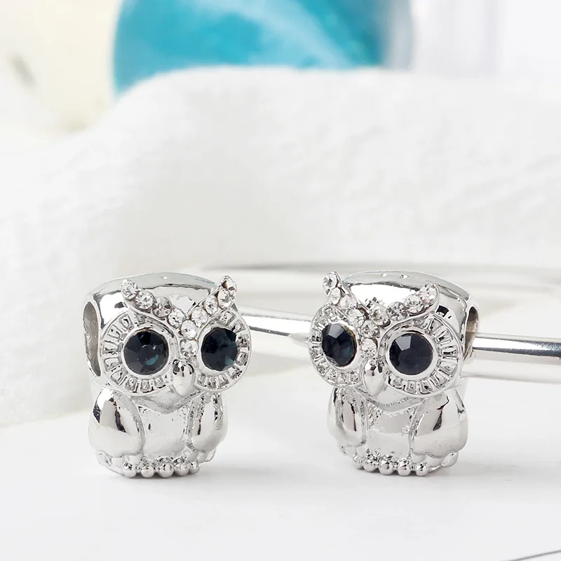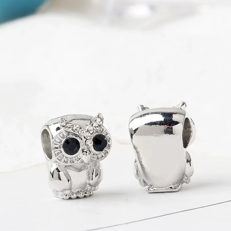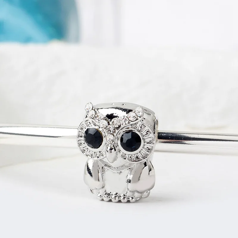 Бусина в виде совы с голубыми кристаллами в виде глаз, оригинальные...