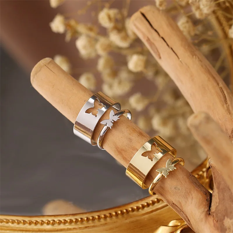 Парные кольца с бабочками для мужчин и женщин, комплект из двух предметов, регулируемые обручальные ювелирные изделия, свадебные мужские и женские кольца, 2022