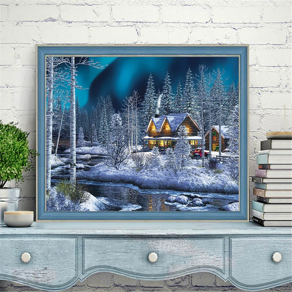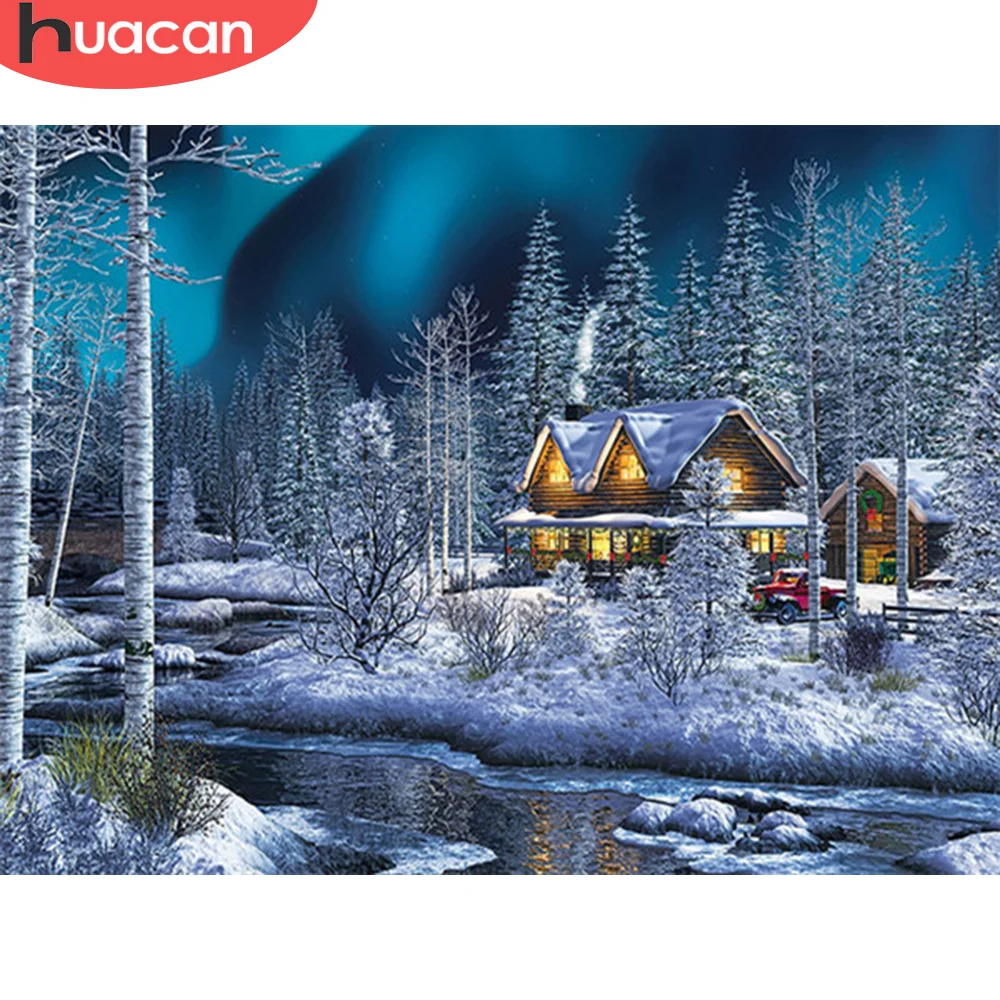 HUACAN полная дрель квадратная Алмазная картина дом Бриллиантовая вышивка пейзаж мозаика зимний набор крестиков украшение для дома