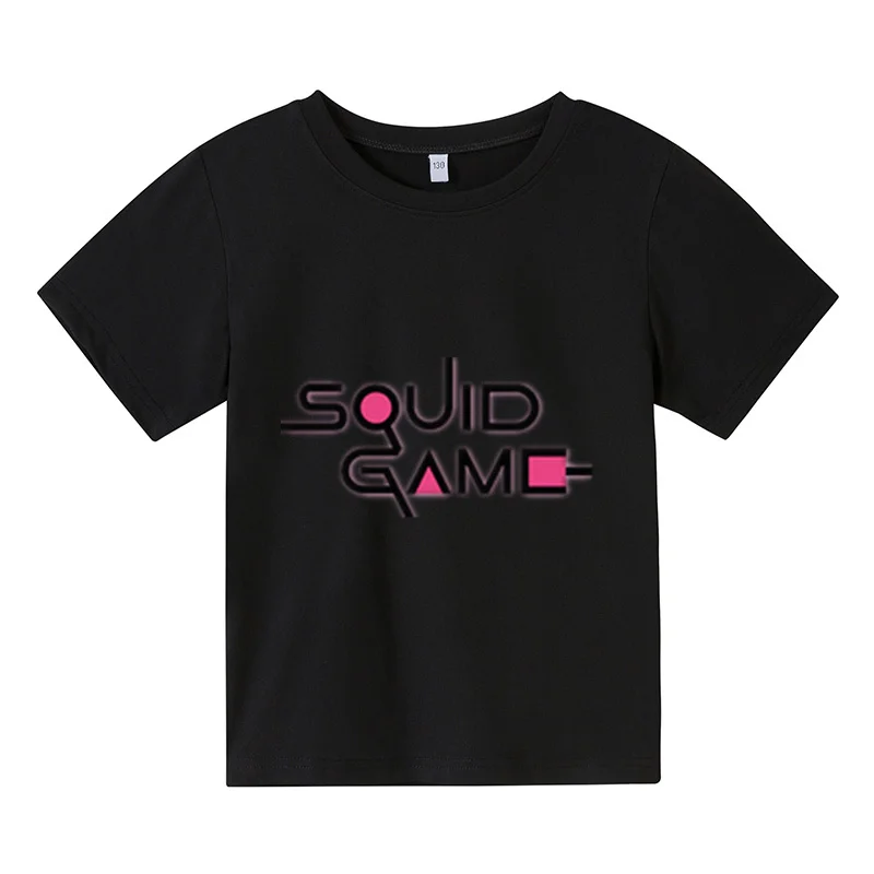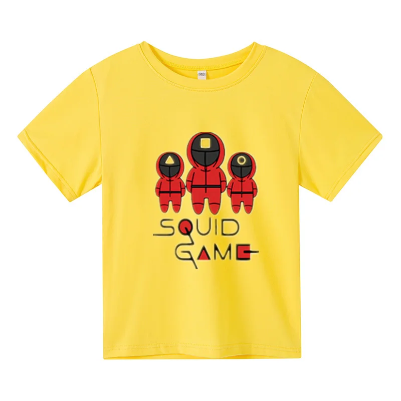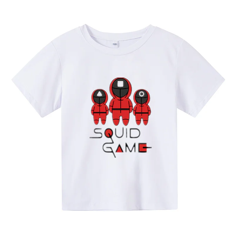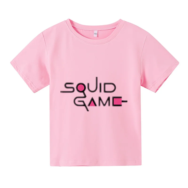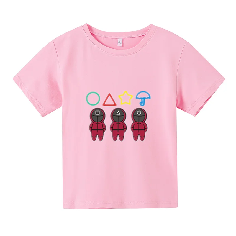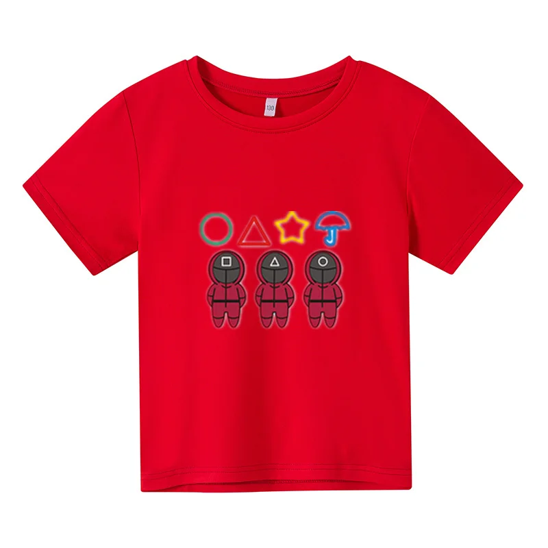 Новинка 2021, футболка большого размера, детский топ с коротким рукавом, детская одежда, футболки для девочек, костюм для игры кальмар, одежда для маленьких мальчиков с принтом