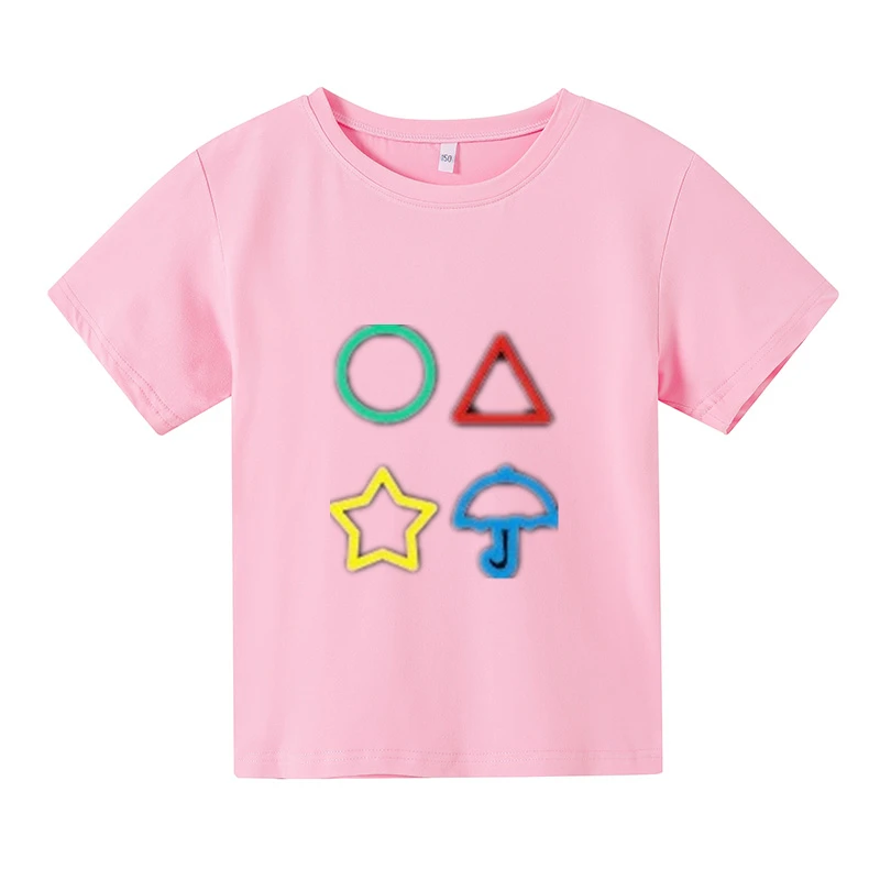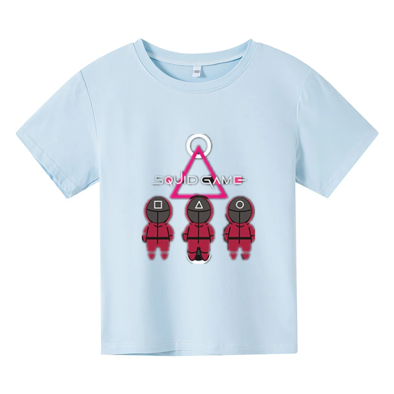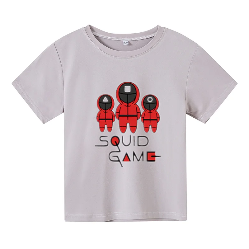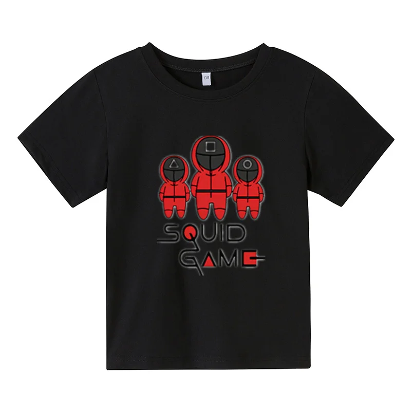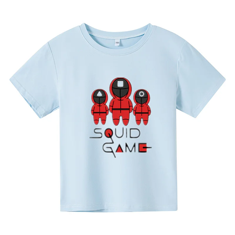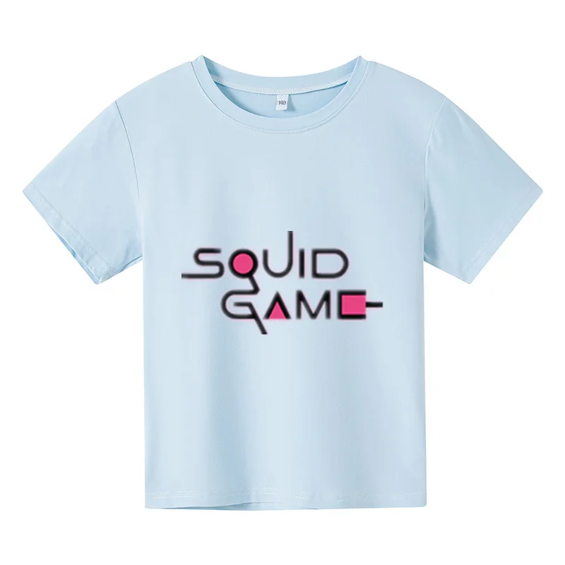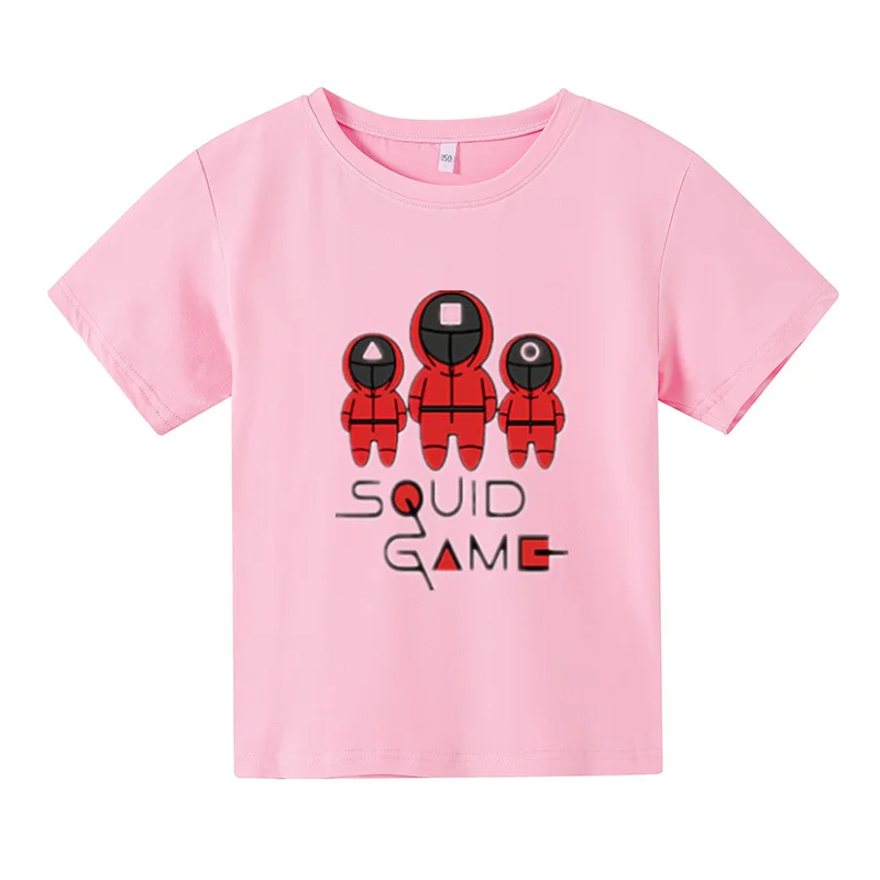 Новинка 2021, футболка большого размера, детский топ с коротким рукавом, детская одежда, футболки для девочек, костюм для игры кальмар, одежда для маленьких мальчиков с принтом