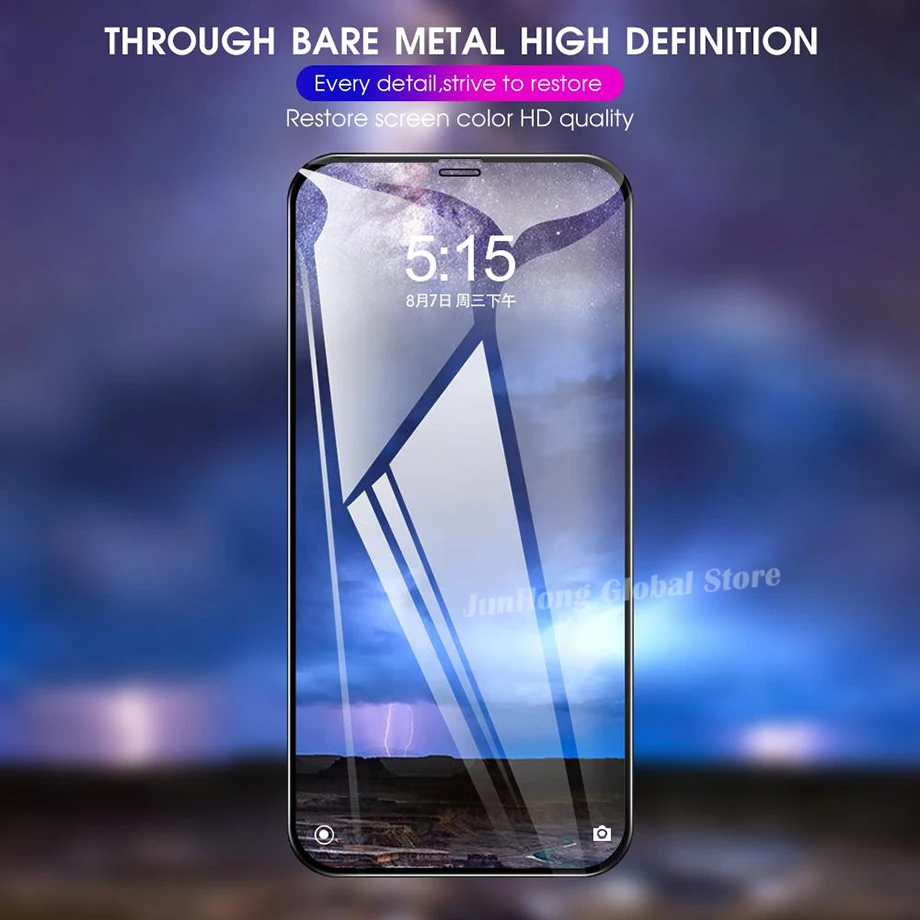 Стекло чуть толще обычного, из минусов следы от защитной пленки с надписью 9d остаются, при включённом экране все норм