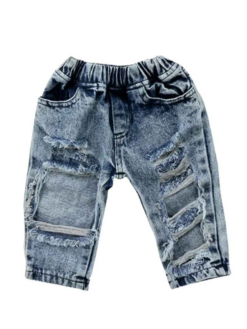 Модные рваные джинсовые брюки для новорожденных девочек и мальчиков...