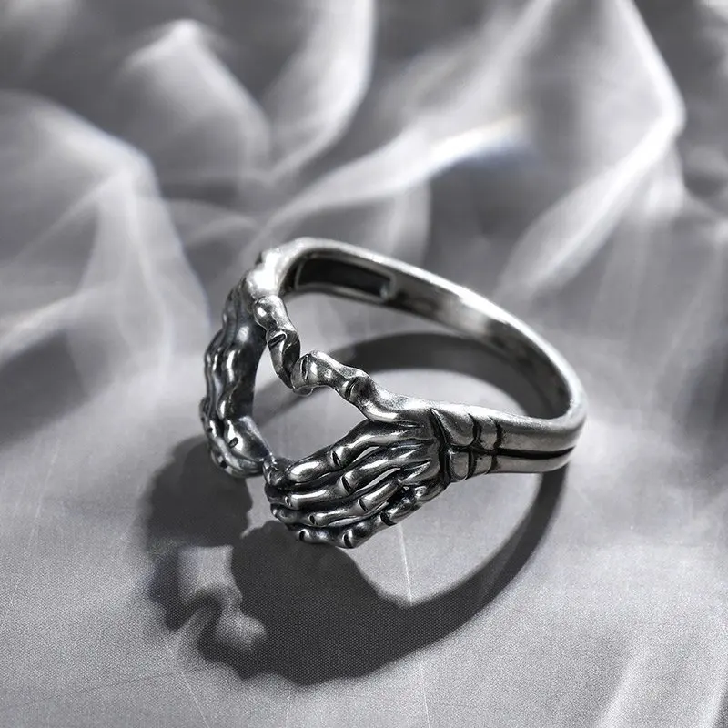Ретро панк хип-хоп в форме сердца Череп Любовь жест металлическое кольцо для мужчин и женщин парные вечерние ничные аксессуары для вечеринок